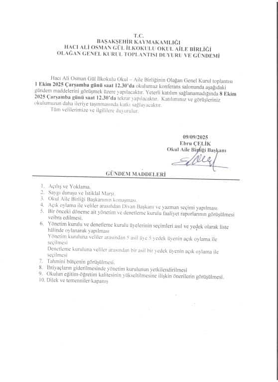 Okul Aile Birliği Olağan Genel Kurulu Toplantısı (01.10.2025)
